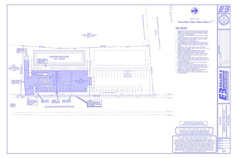 parking and utilities. Civil plans included;